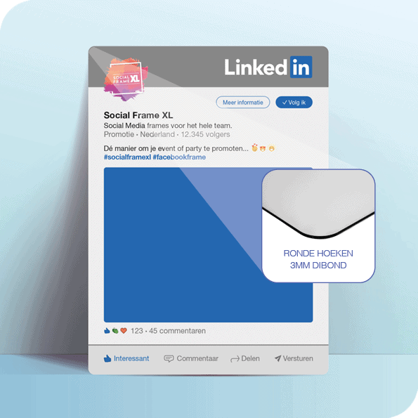 Dat kan met onze Social Media Frames. Met deze borden wordt jouw merk of bedrijfsnaam gepost of getweet en deze kun je vervolgens natuurlijk zelf ook weer liken, sharen of retweeten! En we heten niet zomaar Social Frame XL natuurlijk. Onze frames zijn ook daadwerkelijk Extra Large… Met gemak kan je er met zes mensen in poseren. Maar omdat niet iedereen ‘groot’ wil kan je ook kiezen voor het kleinste ‘selfie’ formaat en alles wat daar tussenin zit, check de shop maar.